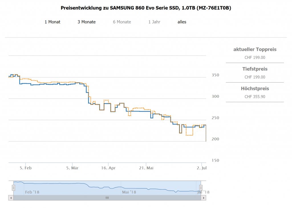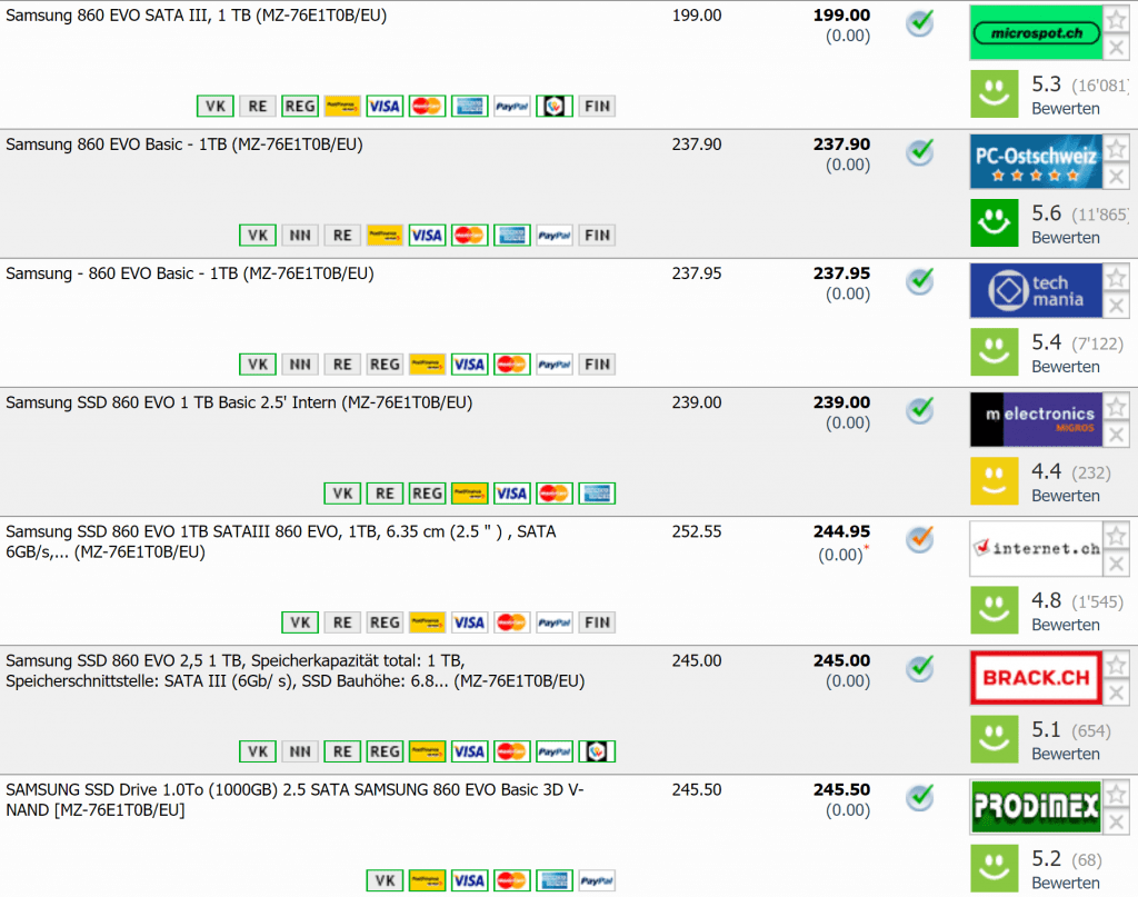 Für unter CHF 213.70 konnte man diese Samsung SSD Festplatte bisher noch nie in der Schweiz kaufen, momentan liegt der zweitbeste Preis bei 237.90