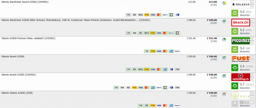 Also der Mixer hat derzeit sogar einen Preis von nur 213CHF.