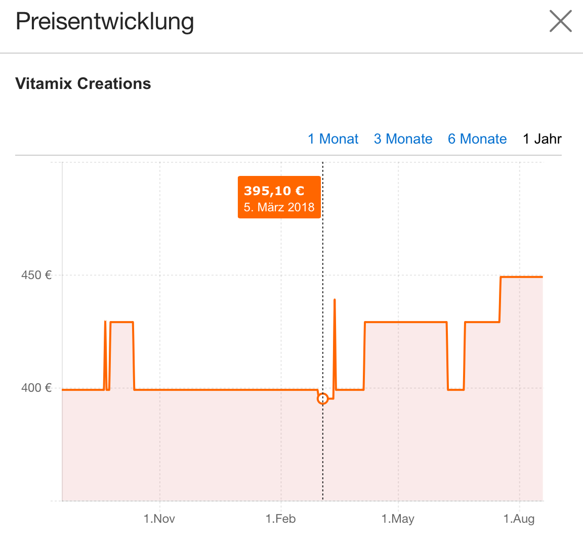 Leider gibt es weder bei toppreise noch bei comparis einen direkten Preisvergleich zu dem Modell. Fündig geworden bin ich letztendlich bei idealo.de, dort wird für das letzte Jahr der günstigste Preis mit 395.10 EUR angeführt.