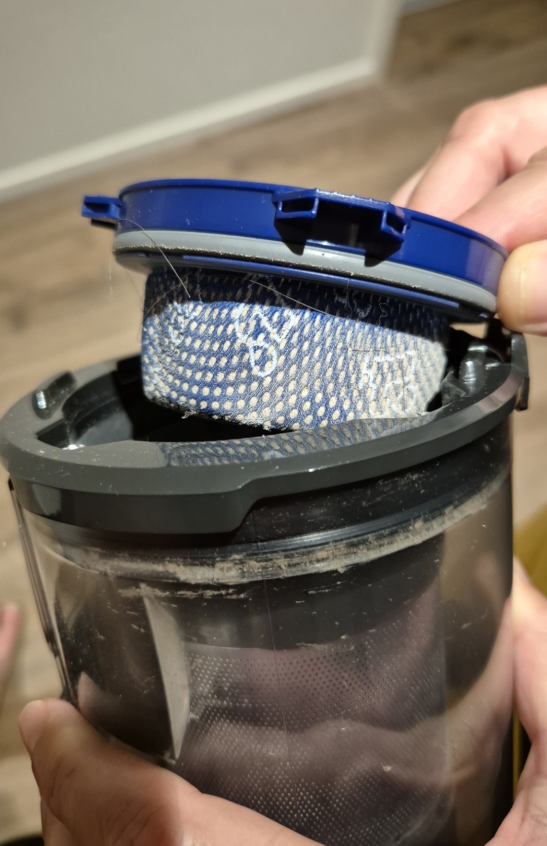 Der Filter ist waschbar wie bei Dyson. Auch neue wären bestellbar.