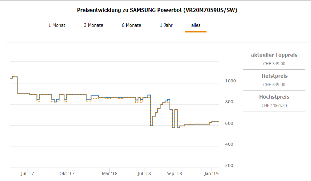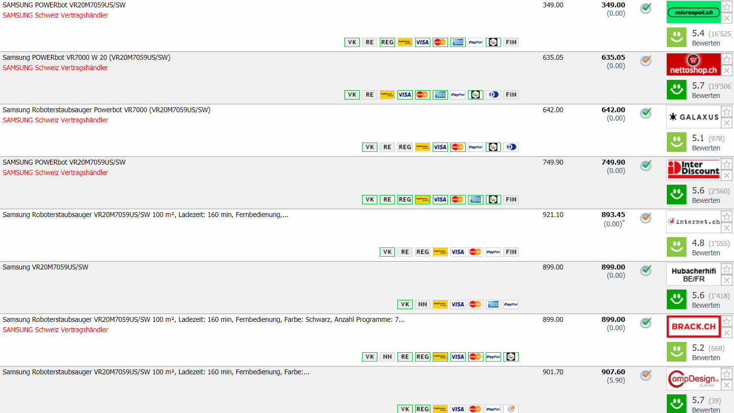Bei microspot gibt’s den SAMSUNG POWERbot VR20M7059US/SW Staubsaugerroboter gerade für CHF 349.- Zweitbester Preis ist bei CHF 635.- bisheriger Bestpreis war bei CHF 581.-