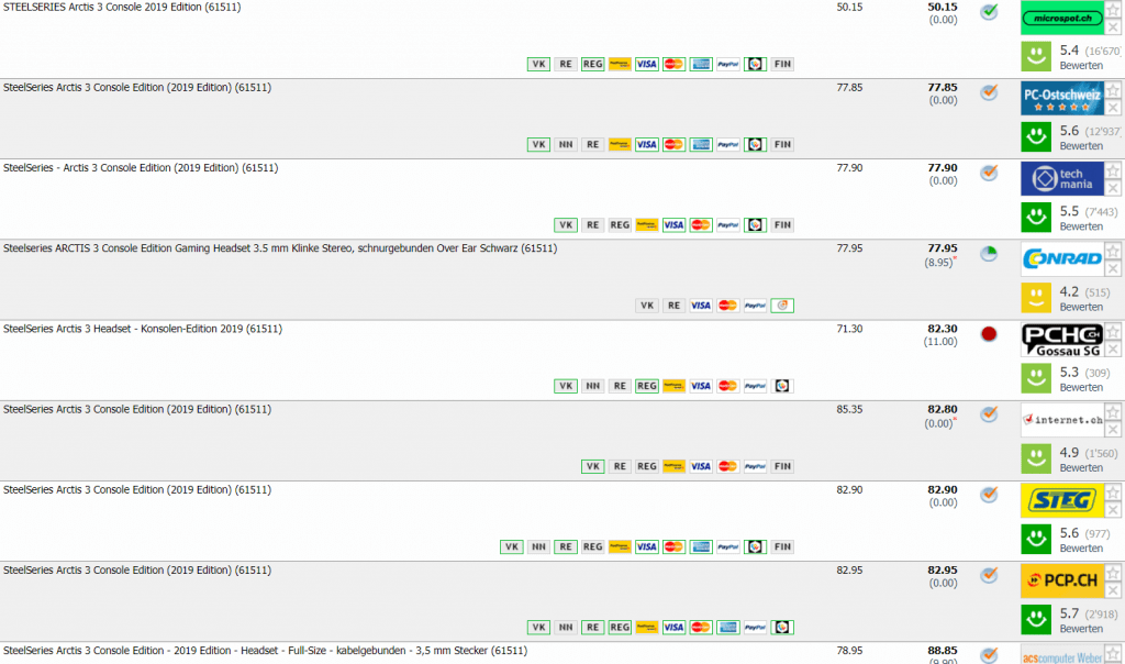 Bei microspot erhält man gerade das 7.1 Surround Sound Headset STEELSERIES Arctis 3 Console 2019 Edition für die Konsolen Xbox One, PS4 oder Switch für CHF 50.15 Zweitbester Preis beträgt CHF 77.85 Bestpreis bisher war bei CHF 58.35