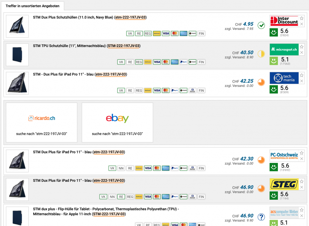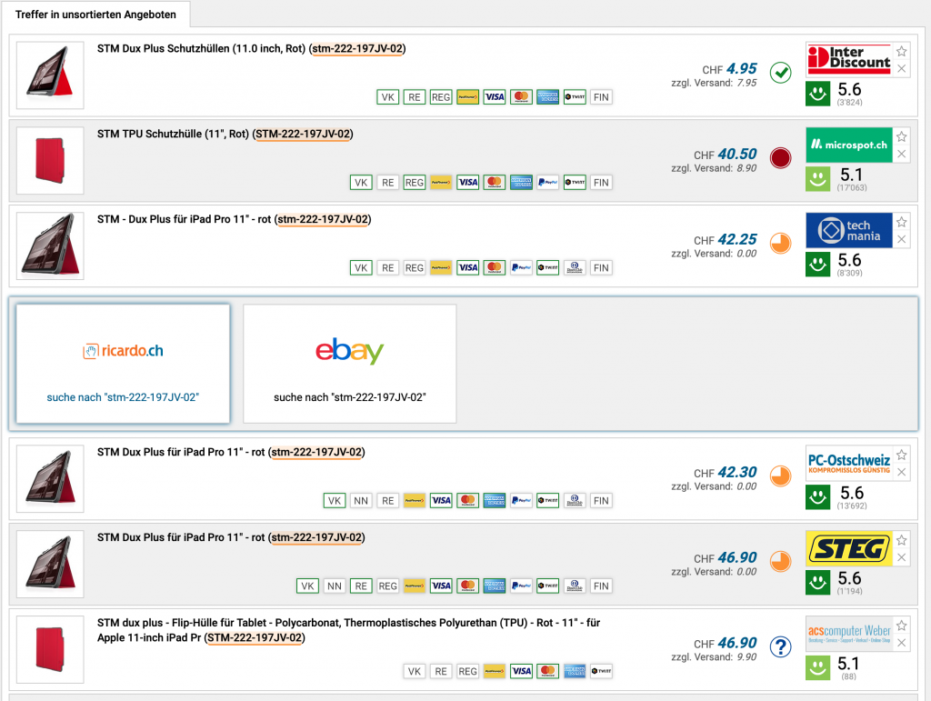 Beim Interdiscount gibt’s gerade STM Dux Plus Schutzhüllen für Apple iPad Pro 11″ in diversen Farben für je CHF 4.95.- Zweitbester Preis beträgt CHF 40.50.-