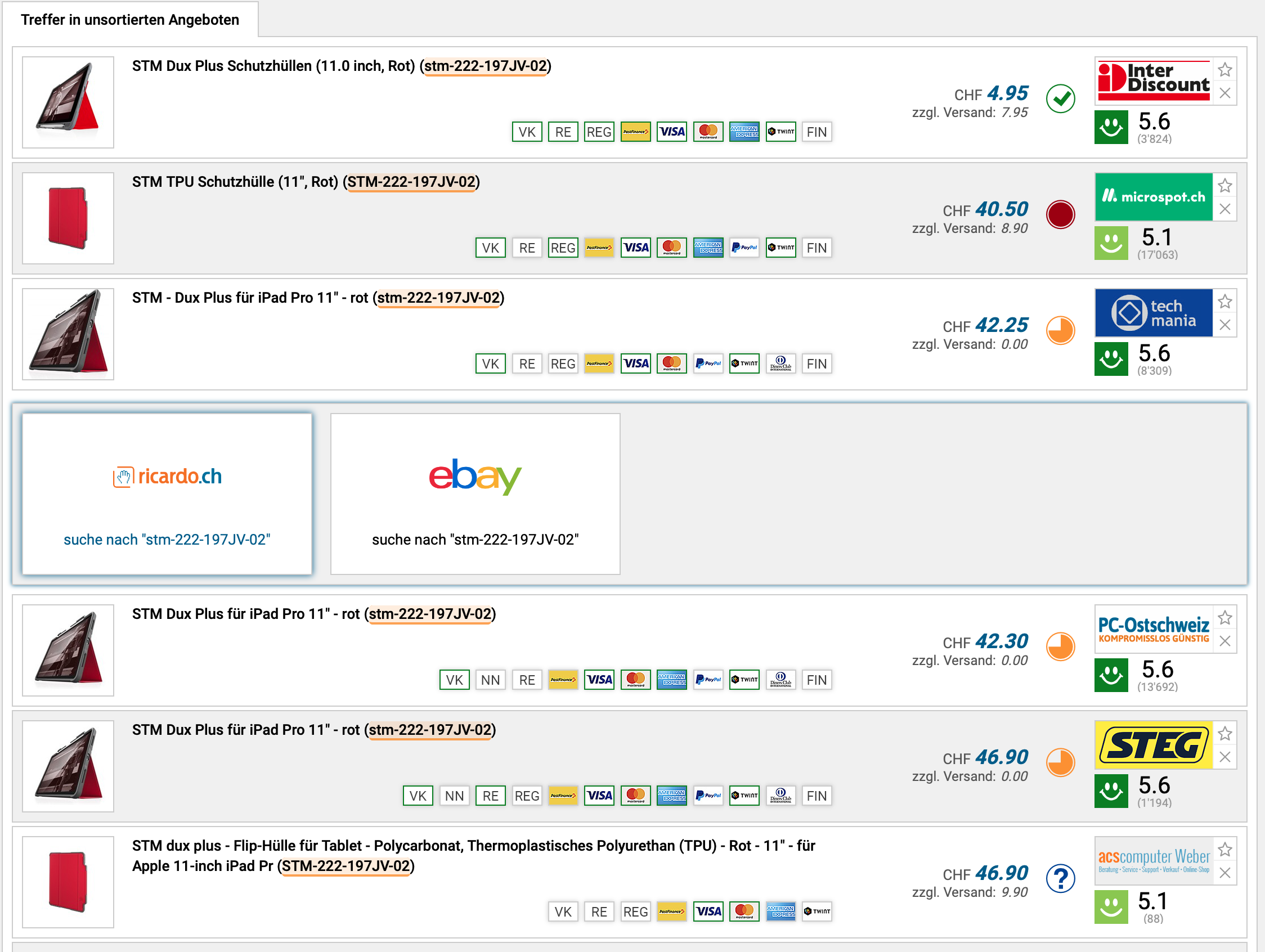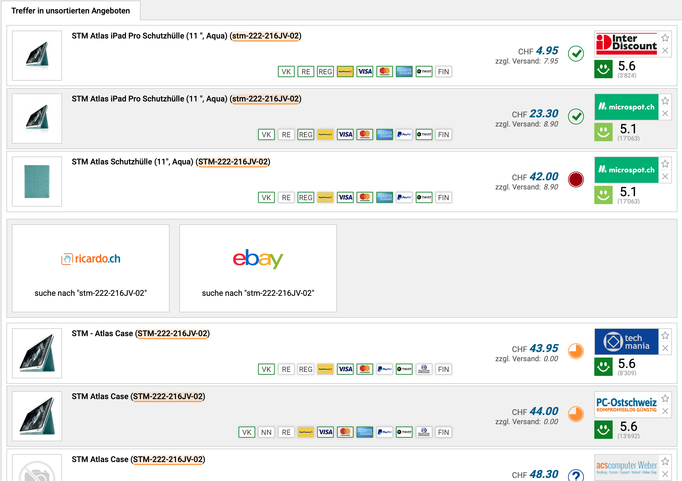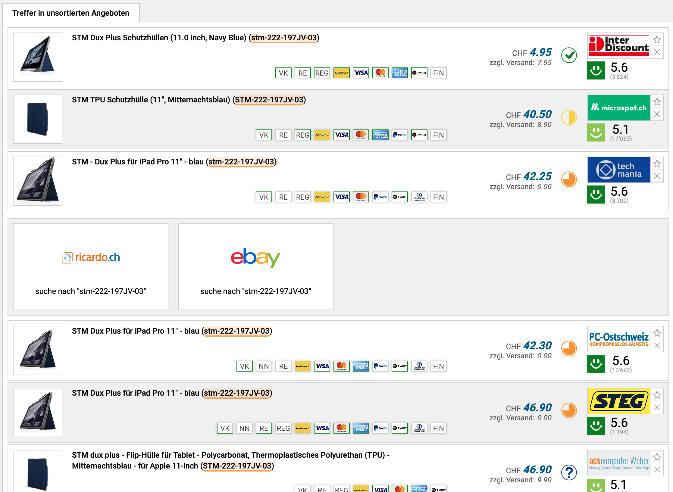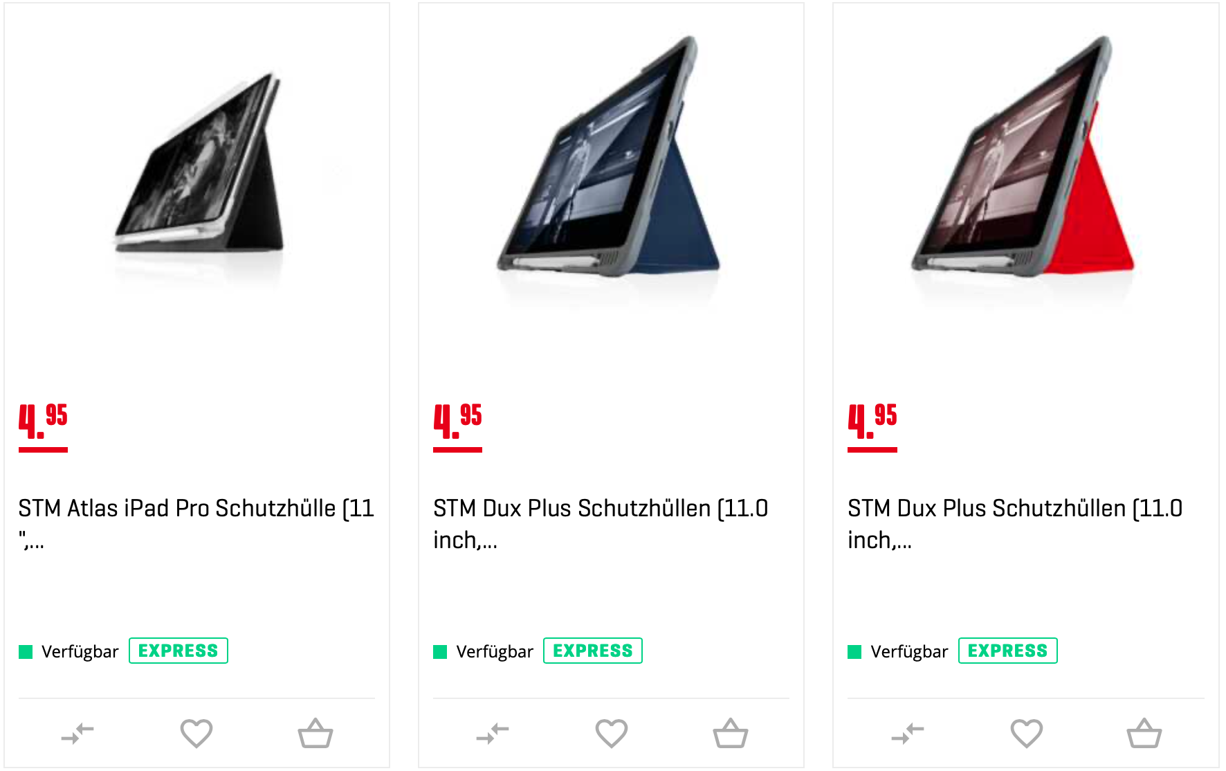 Beim Interdiscount gibt’s gerade STM Dux Plus Schutzhüllen für Apple iPad Pro 11″ in diversen Farben für je CHF 4.95.- Zweitbester Preis beträgt CHF 40.50.-
