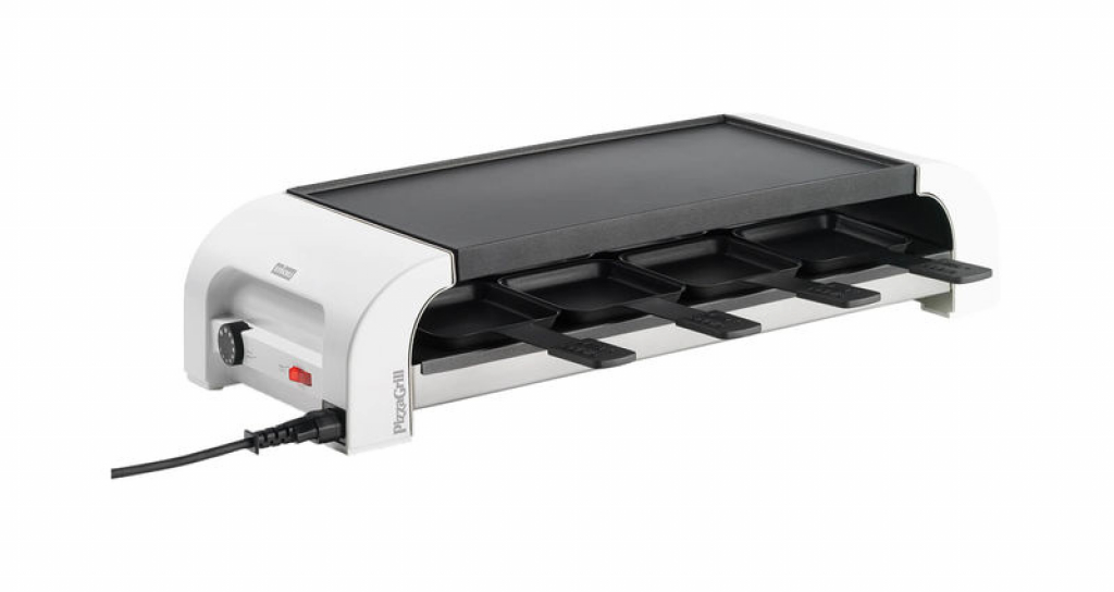 Dieses neue Kombinationsgerät gilt als Multitalent im Bereich ‘Kochen am Tisch’. Einsatzmöglichkeiten ohne Grenzen: z.B. zur Zubereitung von Minipizzas, Raclette oder Grilladen.