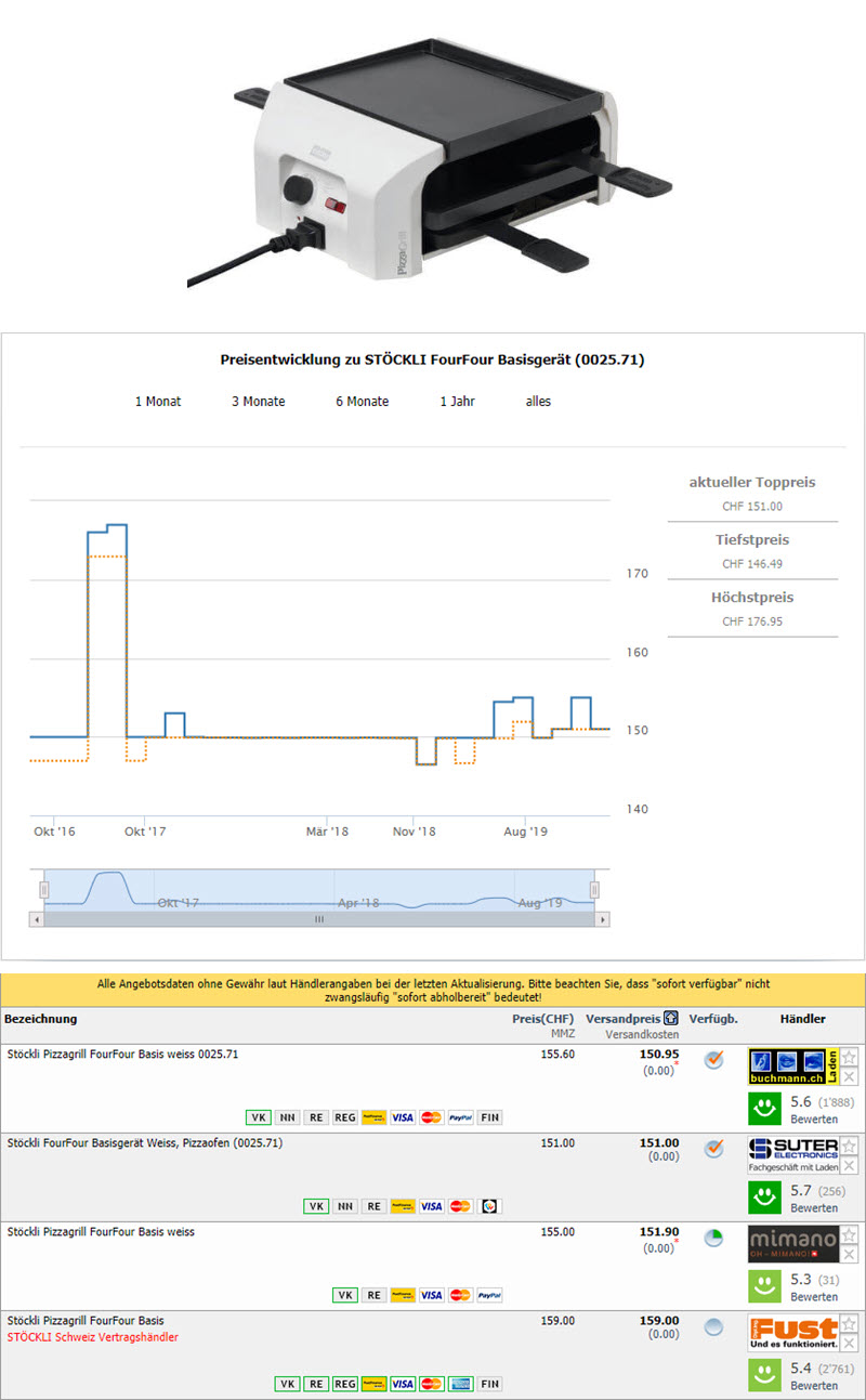 Bei Nettoshop gibt es aktuell den Stöckli PizzaGrill Four Four für Raclette und Pizza zum Bestpreis von CHF 69.90.