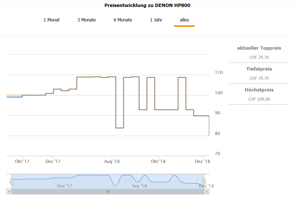Gemäss toppreise lag der bestprice bislang bei 83.70 CHF, der zweitbeste Preis liegt aktuell bei 89.70 CHF.