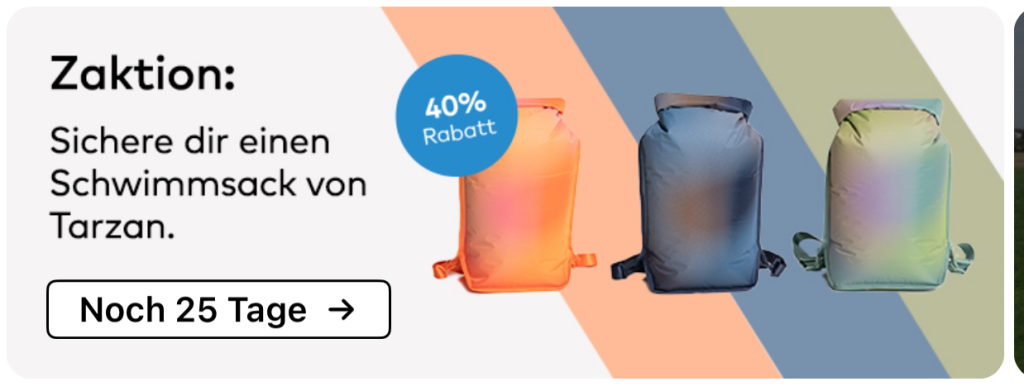 In Zak gibt es im Moment ein Angebot für den Schwimmrucksack von Tarzan mit 40% Rabatt.