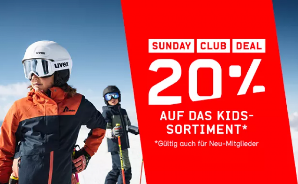 Bei Ochsner Sport gibt es im Rahmen der Sunday Club Deal Aktion 20% Rabatt auf das Kids-Sortiment. Es gibt gerade viele verschiedene Schnäppchen zu entdecken, daher lohnt es sich ein wenig zu stöbern.