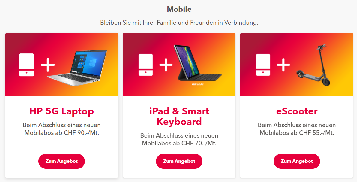 5G-Notebook / iPad oder ein eScooter, abhängig vom Monatspreis des neuen Mobile-Abos: