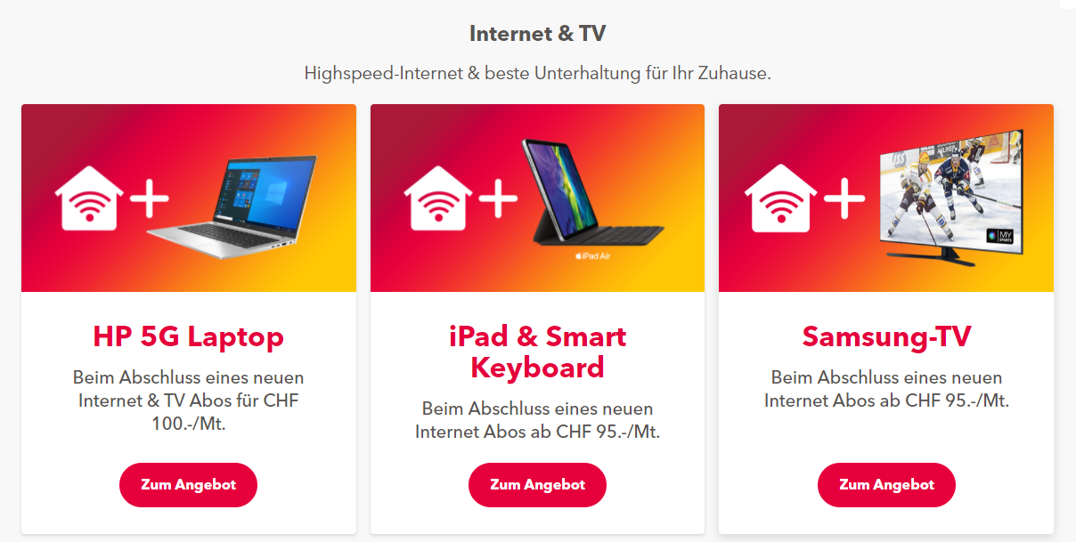 5G-Notebook / iPad oder ein Samsung-TV, abhängig vom Monatspreis des neuen Internet&TV-Abos: