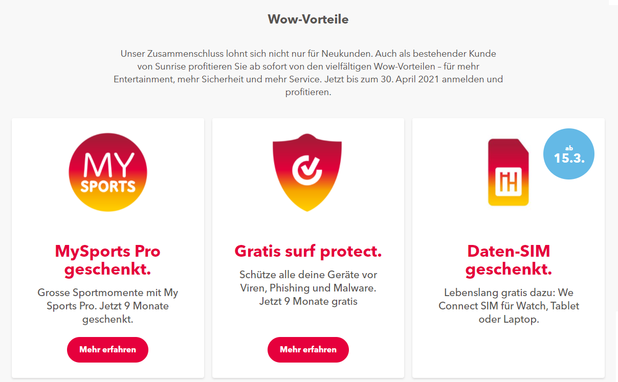 Bei Sunrise erhält ihr momentan aufgrund der UPC-Fusion Gratis-Goodies.