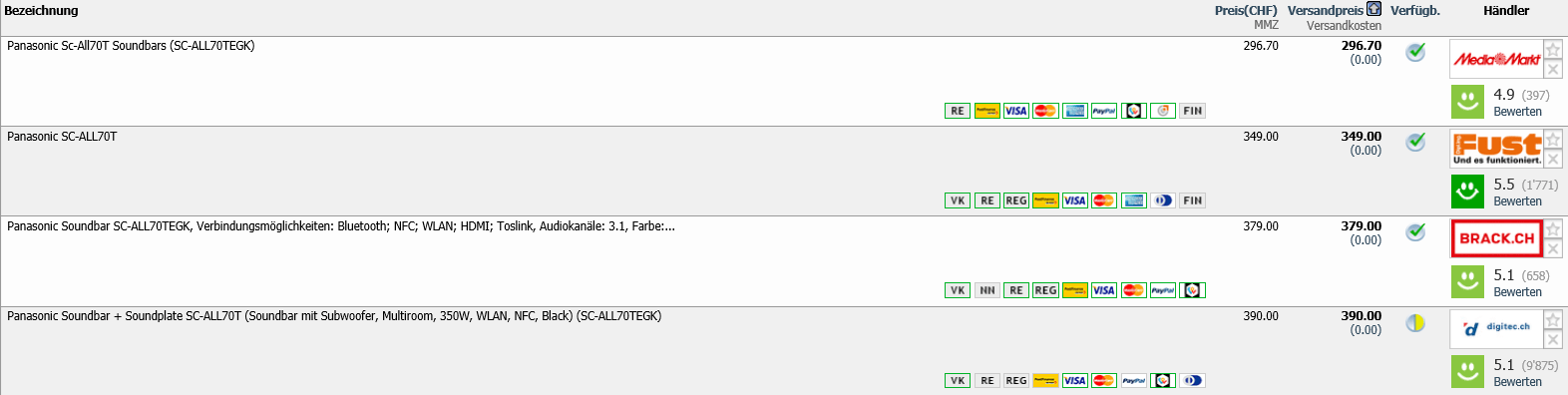 Die Surround Bar gab es bereits 2mal zu einem ähnlich Preis, im November 2016 für 299.- CHF und im März diesen Jahres für 299.90 CHF. Der zweitbeste Preis liegt aktuell bei 349.- CHF.