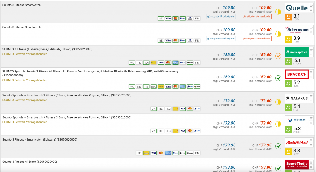 Bei Amazon gibt’s die SUUNOT 3 Fitness-Uhr für umgerechnet CHF 91.15. Bestpreis in der Schweiz war bei CHF 99.- Derzeit nicht unter CHF 109.- erhältlich.
