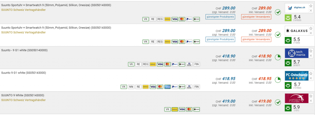 Bei digitec und galaxus gibt es die Suunto 9 Smartwatch für den neuen Bestpreis von CHF 289.-. Der vorherige Bestpreis war CHF 353.52. Der zweitbeste Preis beträgt CHF 418.90.