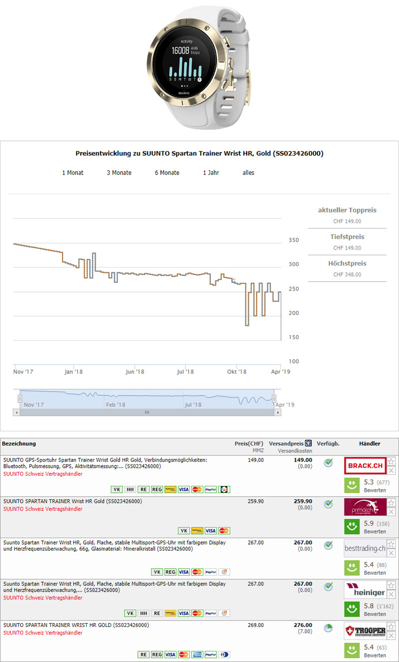 Bei Brack gibt es im Sale momentan die Suunto GPS-Sportuhr Spartan Trainer Wrist HR (in diversen Farben) zum Bestpreis von CHF 149.-.