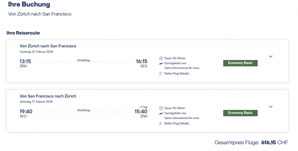 CHF 616.15 für Hin- und Rückflug Zum Deal
