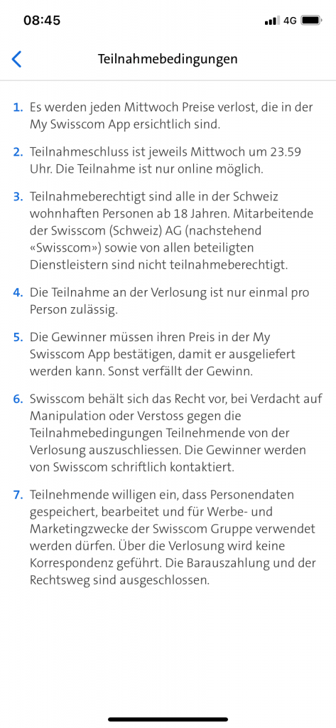 Für Swisscom Kunden (zB. mit einem Internet/TV oder Handyabo) hinterlegt in ihrem Swisscom Kundencenter-Login gibts ab heute jeden Mittwoch in der My Swisscom App für iOS und Android ein kleines Gewinnspiel mit Sofortpreisen 🙂