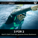 Bei arenaswimming.ch gibt es dieses Wochenende einen Kauf 3, Zahl 2 Deal auf das gesamte Sortiment.