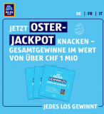 Bis zum 31.3.2024 kann man kostenlos beim ALDI Osterjackpot Gewinnspiel mitmachen und gewinnt damit diverse Sofortpreise (z.B. ein Bon für CHF 5.- Rabatt ab ...