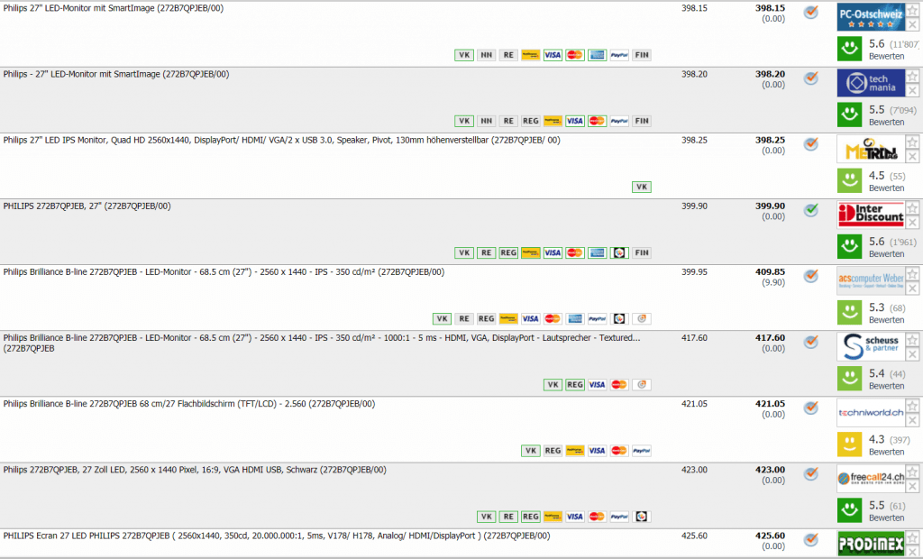 Der Bestpreis für den Philips Monitor lag bisher bei CHF 398.15, digitec bietet ihn für sehr gute CHF 249.- an.