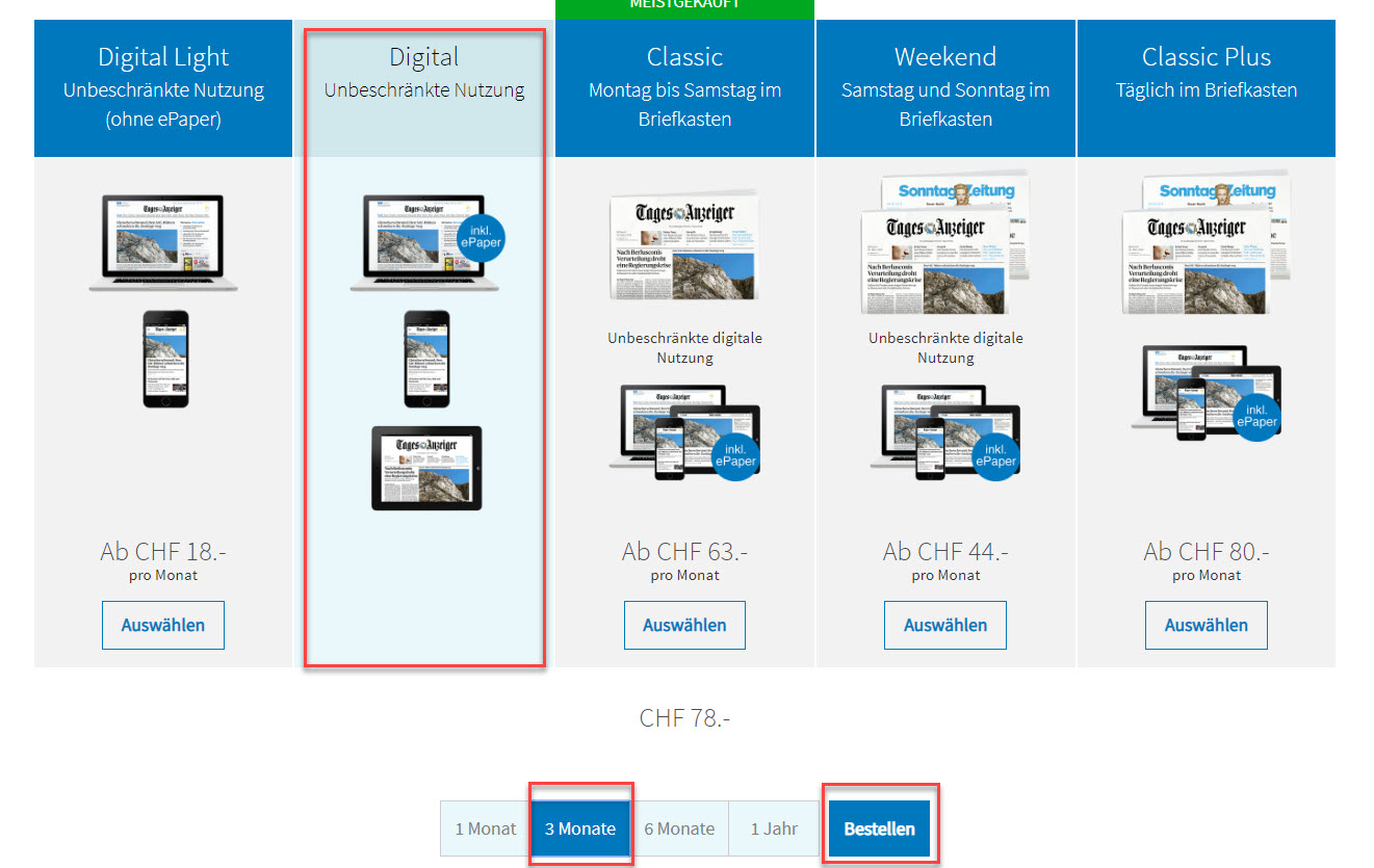 - Das Abo Digital auswählen