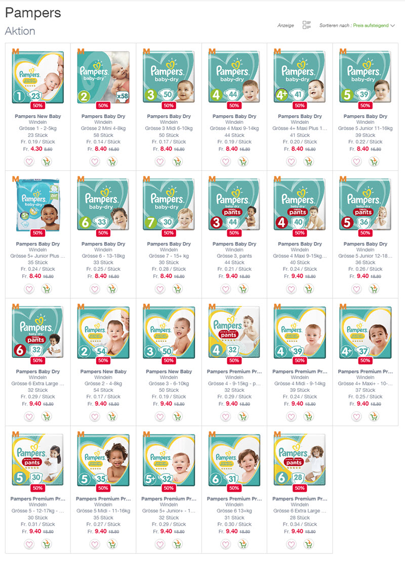 Für alle Mamis und Papis gibt es bei Leshop als Tageshit 50% Rabatt auf alle Pampers (ausser Maxipack, Monatsbox und Micro). Somit ergibt sich ein Windelpreis ab CHF 0.14 und ist somit auch günstiger als die Grosspackungen.
