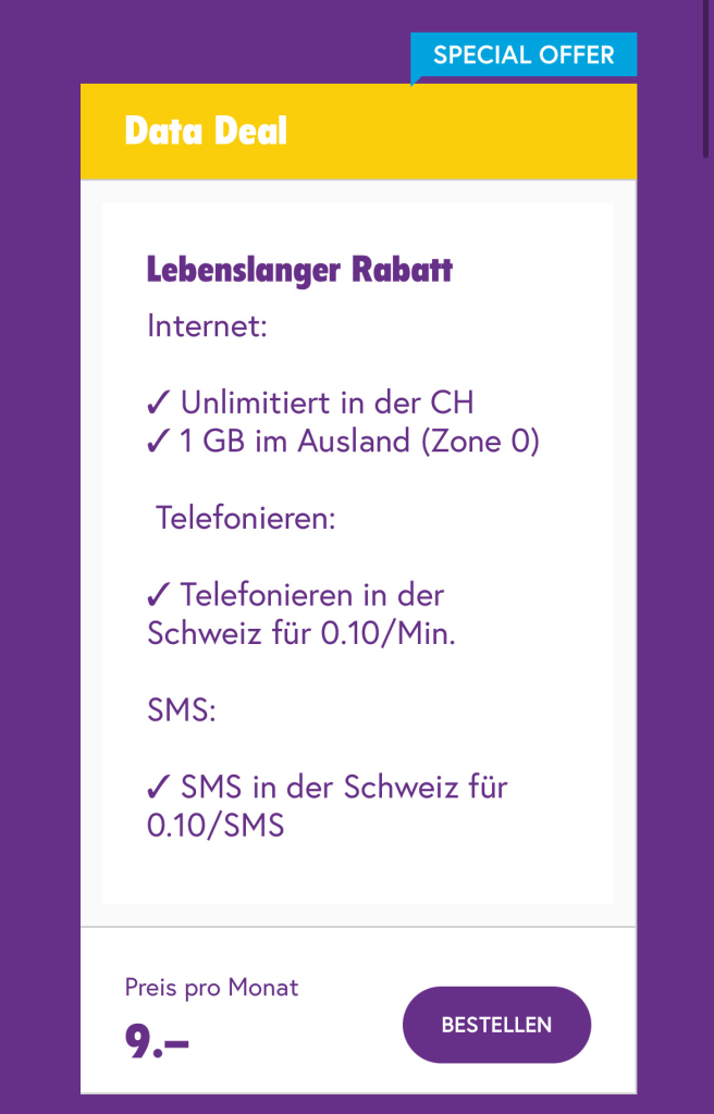 - Lebenslanger Rabatt (bei 24 Monaten Mindestvertragsdauer)