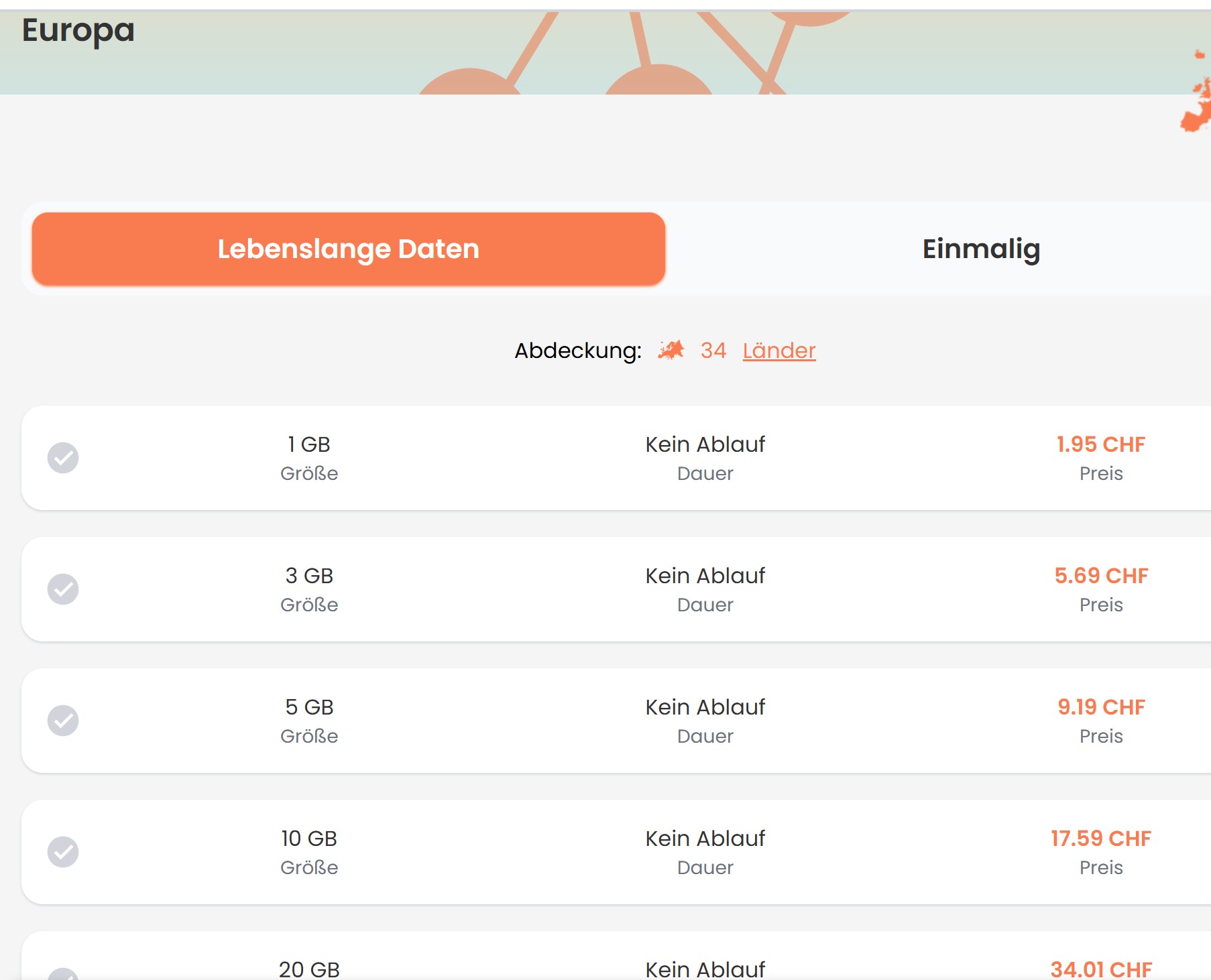 gibts hier zb mit aktionscode für 23.- 20 GB Roaming-Daten in Europa mit unbegrenzter Laufzeit :-)