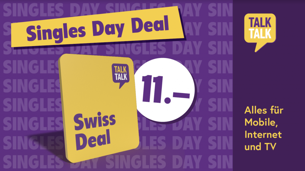 Zum Singles Day haut TalkTalk entgegen unseren Erwartungen wieder das sehr beliebte Mobilabo Swiss Deal zum Piratenpreis für 11 Franken raus! Ganz wichtig: DER DEAL GILT NUR HEUTE!