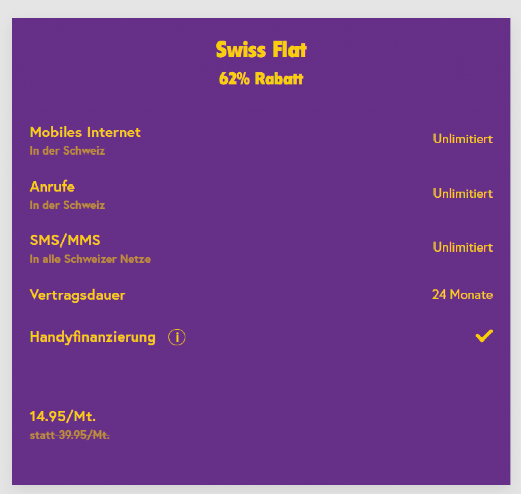Bei TalkTalk gibt’s das Abo Swiss Flat derzeit für CHF 14.95 / Monat. Gewiss nicht ganz so gut wie die Aktionen in der Vergangenheit, wo es das Abo für sagenhafte CHF 11.- / Monat gab, aber trotzdem ein starker Preis.