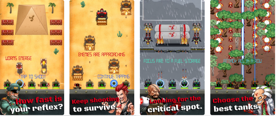 Tank Army ist ein schnelles Action-Shoot-em-Up. Durch die Kombination von Panzern beginnt man sich im Gelände zu bewegen, während man durch Tippen auf den Panzer schießen muss, wobei man verschiedene Boni in Form von Luftangriffen und anderen nützlichen Unterstützungseinheiten und Gegenständen einsetzen kann. Erlebe die aufregenden, einminütigen Levels, die du überall spielen kannst.