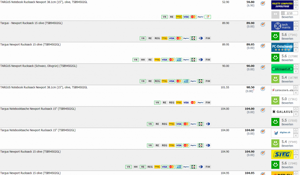 Bei Foletti gibt’s gerade den TARGUS Newport 15″ Notebook Backpack für CHF 52.90, inkl. Versand für CHF 59.80 Zweitbester Preis in der Schweiz liegt bei CHF 89.90, was ebenfalls auch der Bestpreis war. Insbesondere erstaunlich, da sehr viele Händler diesen Rucksack im Sortiment haben.