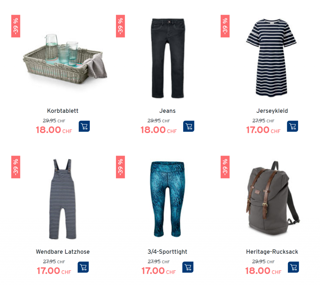 Bei Tchibo gibt’s mit dem Gutscheincode ALLES13 13% zusätzlichen Rabatt auf alle Artikel aus dem SALE. Die Auswahl ist gross und der Versand ab einem Bestellwert von 30 Franken gratis.