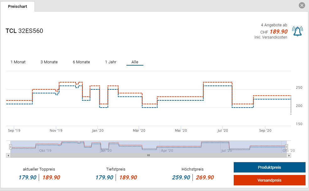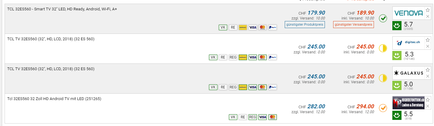 Bei Venova gibt es den TCL 32ES560 Smart TV 32″ für den neuen Bestpreis von CHF 189.90 (inkl Versand). Der vorherige Bestpreis war CHF 209.90. Der zweitbeste Preis beträgt CHF 245.-.