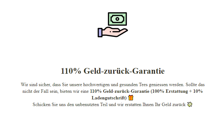 Sollte dir der Tee nicht schmecken, ist Tèaura äusserst vorbildlich und bietet folgende Leistung an: