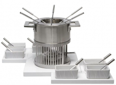 Techmania – Nouvel Fleischfondue-Set Stripes 24 Teile, Silber/Weiss Für 6 Personen