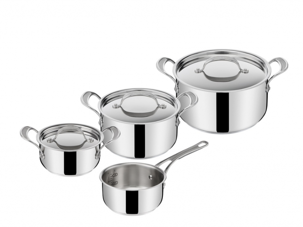 Dieses Kochgeschirr-Set aus hochwertigem Edelstahl von Tefal macht das tägliche Kochen zu einem reinsten Vergnügen. Es ist sehr langlebig, hält Stössen stand und macht das Kochen besonders angenehm.