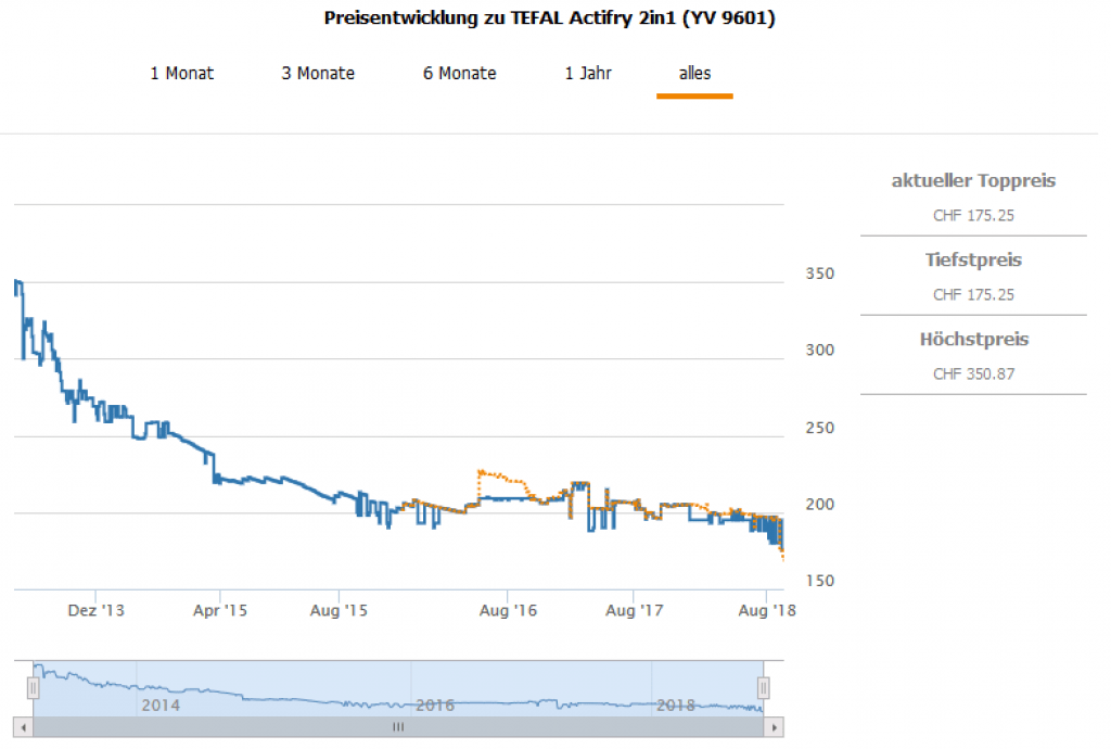 Die Actifry 2in1 (YV 9601) gibt es aktuell für 174.90 CHF, mit dem Gutscheincode kommt ihr als auf 159.90 CHF. Zweitbester Preis aktuell und best price 168.75 CHF.