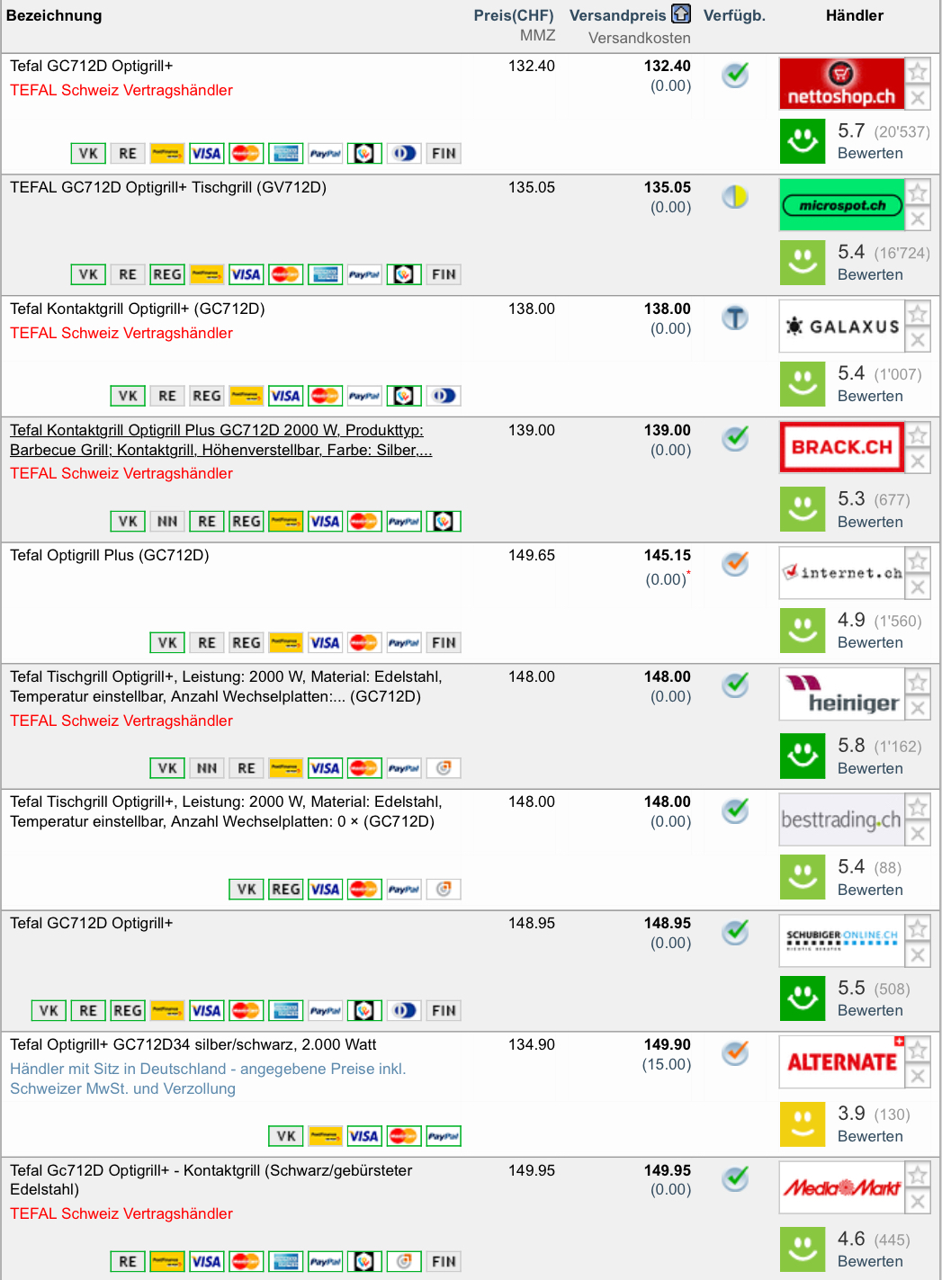 Gemäss toppreise liegt der zweitbeste Preis bei 132.40 CHF.