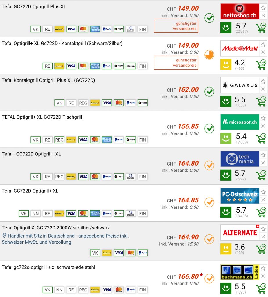 • Es kommen keine weiteren/nachträglichen Kosten (wie z. B. Zoll) auf den zuletzt angezeigten Preis oben drauf