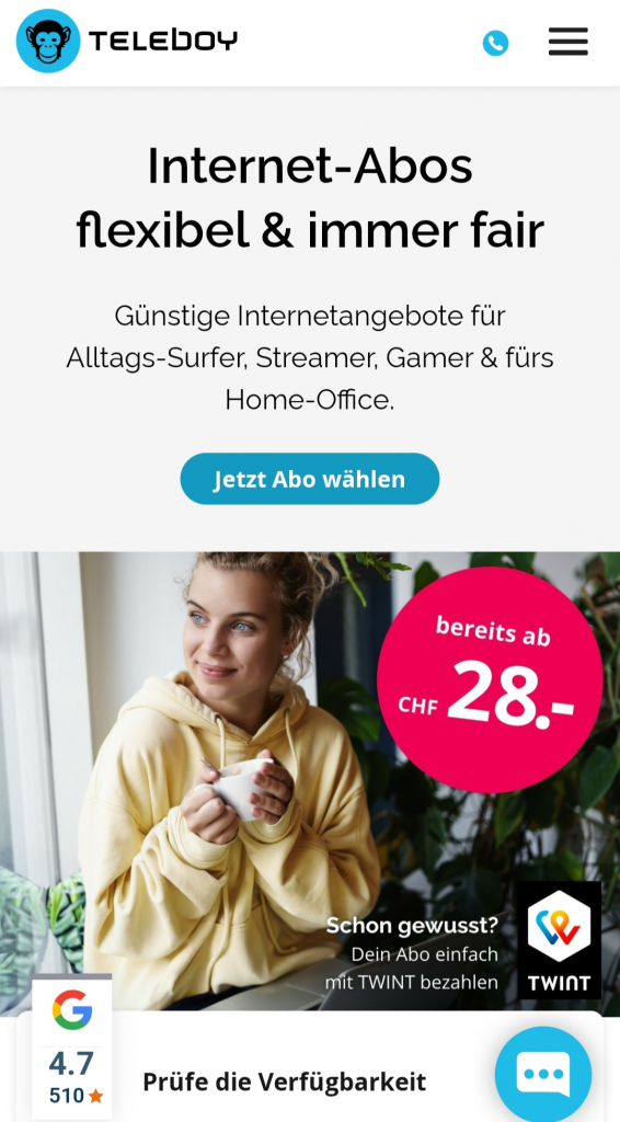 Für unsere Internet-Abos nutzen wir die DSL- und Glasfaser-Infrastruktur der Swisscom. Somit ist die Zuverlässigkeit des grössten Anbieters der Schweiz, mit einer Abdeckung von circa 98% aller Haushalte, garantiert. Hierfür stellen wir Dir einen passenden und bereits vorkonfigurierten WLAN-Router kostenlos zur Verfügung.