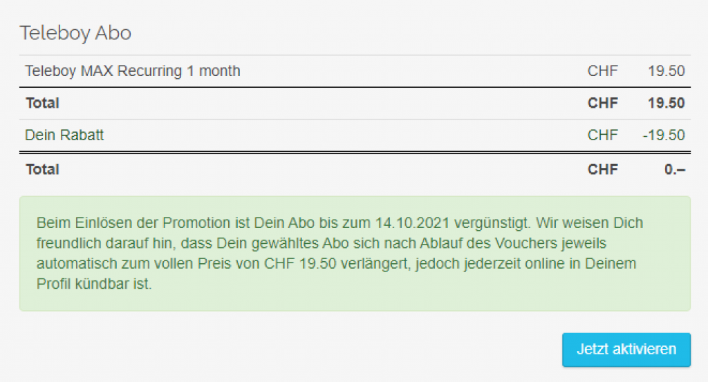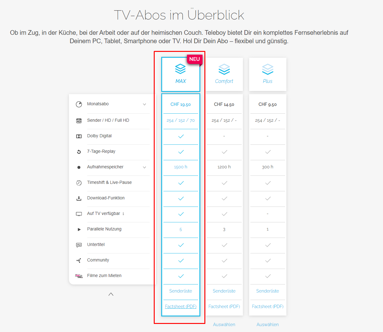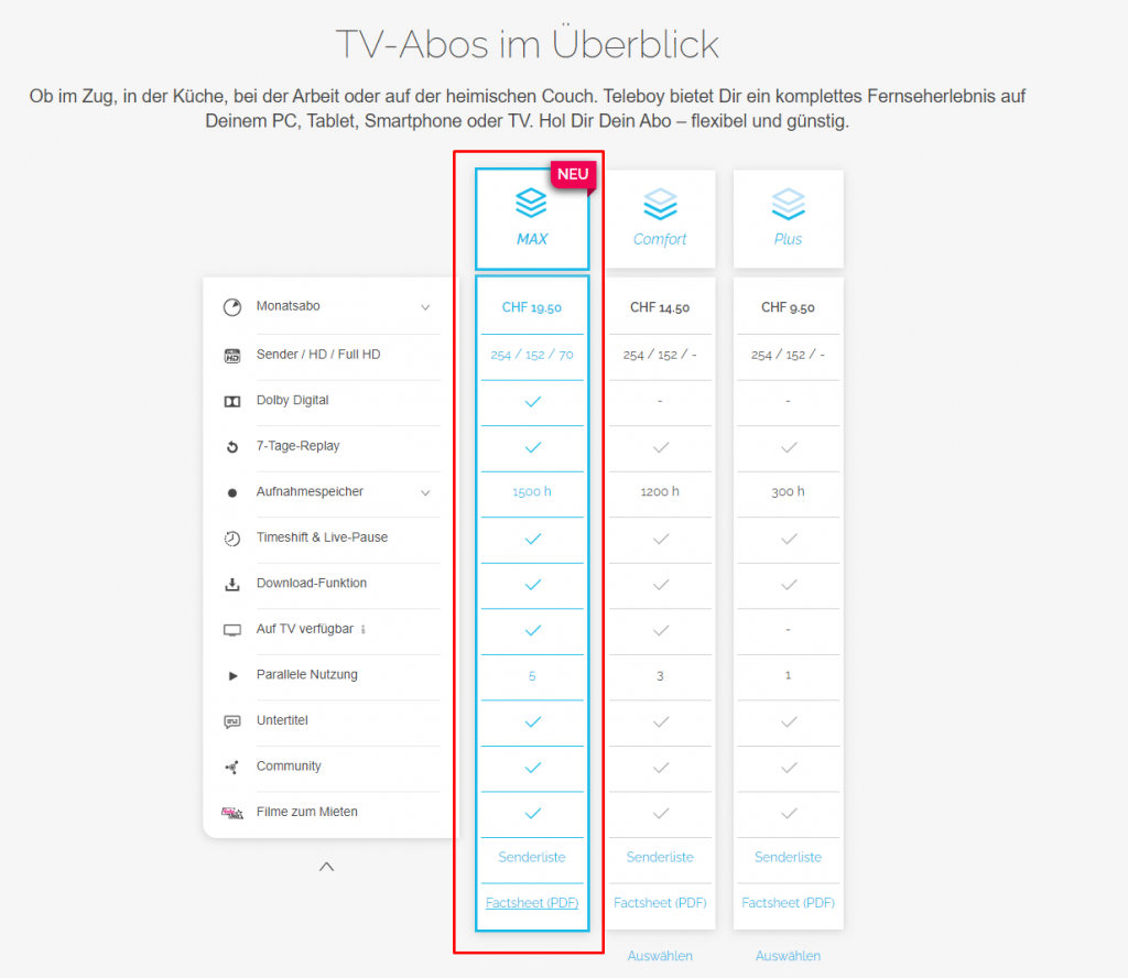 Randnotiz für nach der Testphase: In Kombination mit Teleboy Internet kostet Teleboy MAX noch 11.- pro Monat.