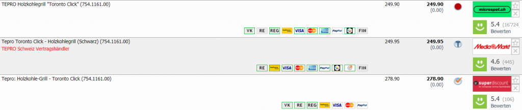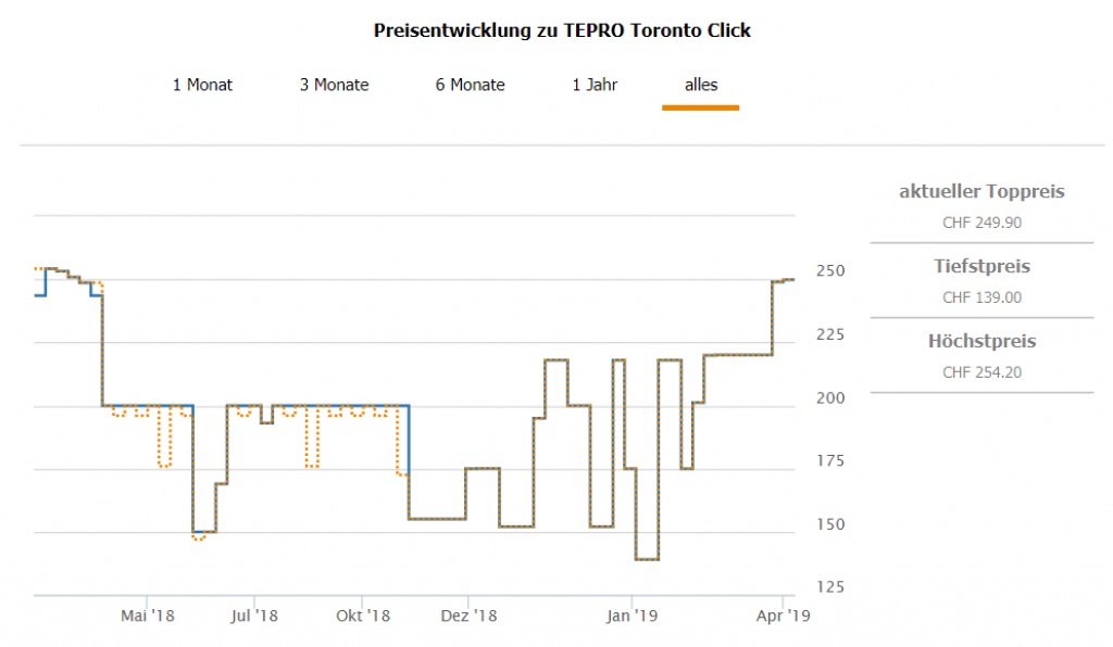 Wenn ich das richtig sehe, ist der Vergleichspreis bei CHF 249.90 und der Bestpreis war bei CHF 139.-
