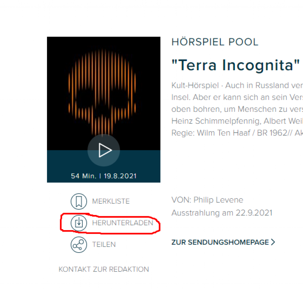 Das Hörspiel zu dem Buch Terra Incognita ist dort momentan gratis zum Download erhältlich. Man muss sich nicht einmal anmelden.