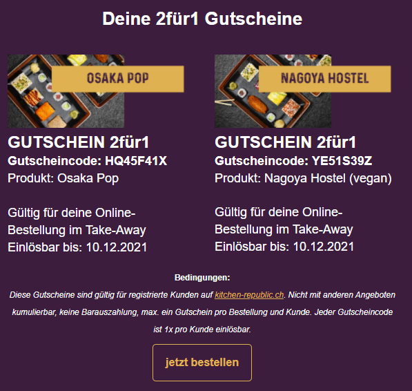 Diese Woche gibt’s bei Kitchen Republic zwei Bonus-Gutscheine: