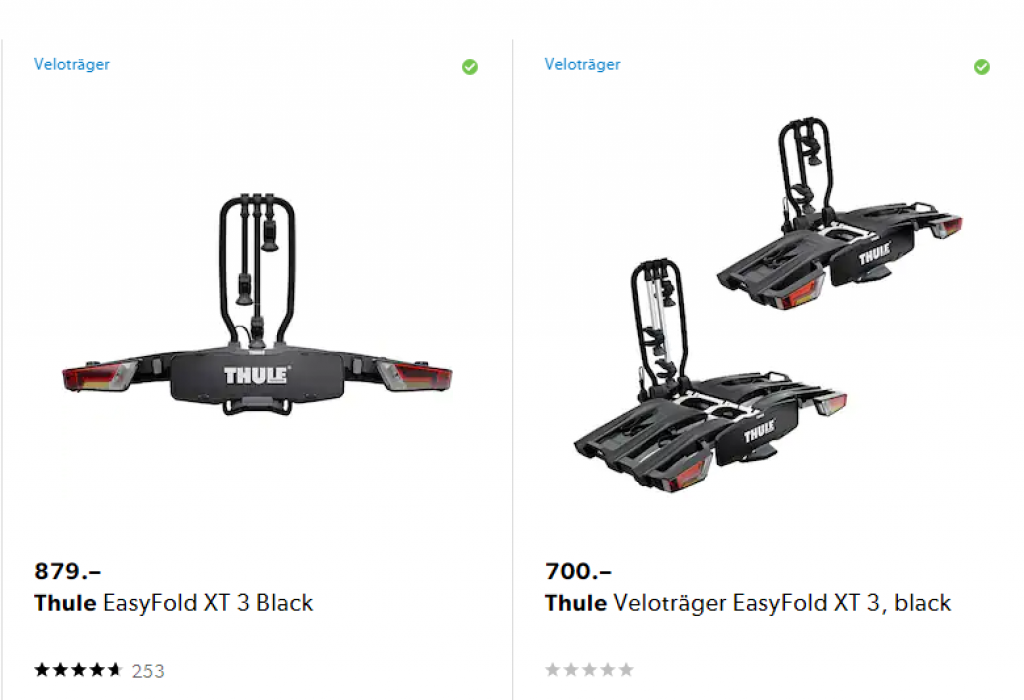 Wer für die Sommerferien noch einen Veloträger (Kupplung) sucht: der EasyFold XT3 von Thule gibt es bei Galaxus zu einem guten Preis. Er kann komplett zusammengeklappt werden und bietet Platz für bis zu drei Fahrrädern.