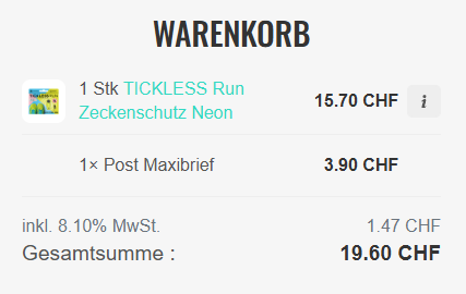 Ich binde mir jeweils ein 20er Nötli an den Schuh. Die Erfolgsquote wird wohl ähnlich hoch sein, denn allgemein sind Zecken nicht als so geldgierig bekannt wie zB der Hersteller hier