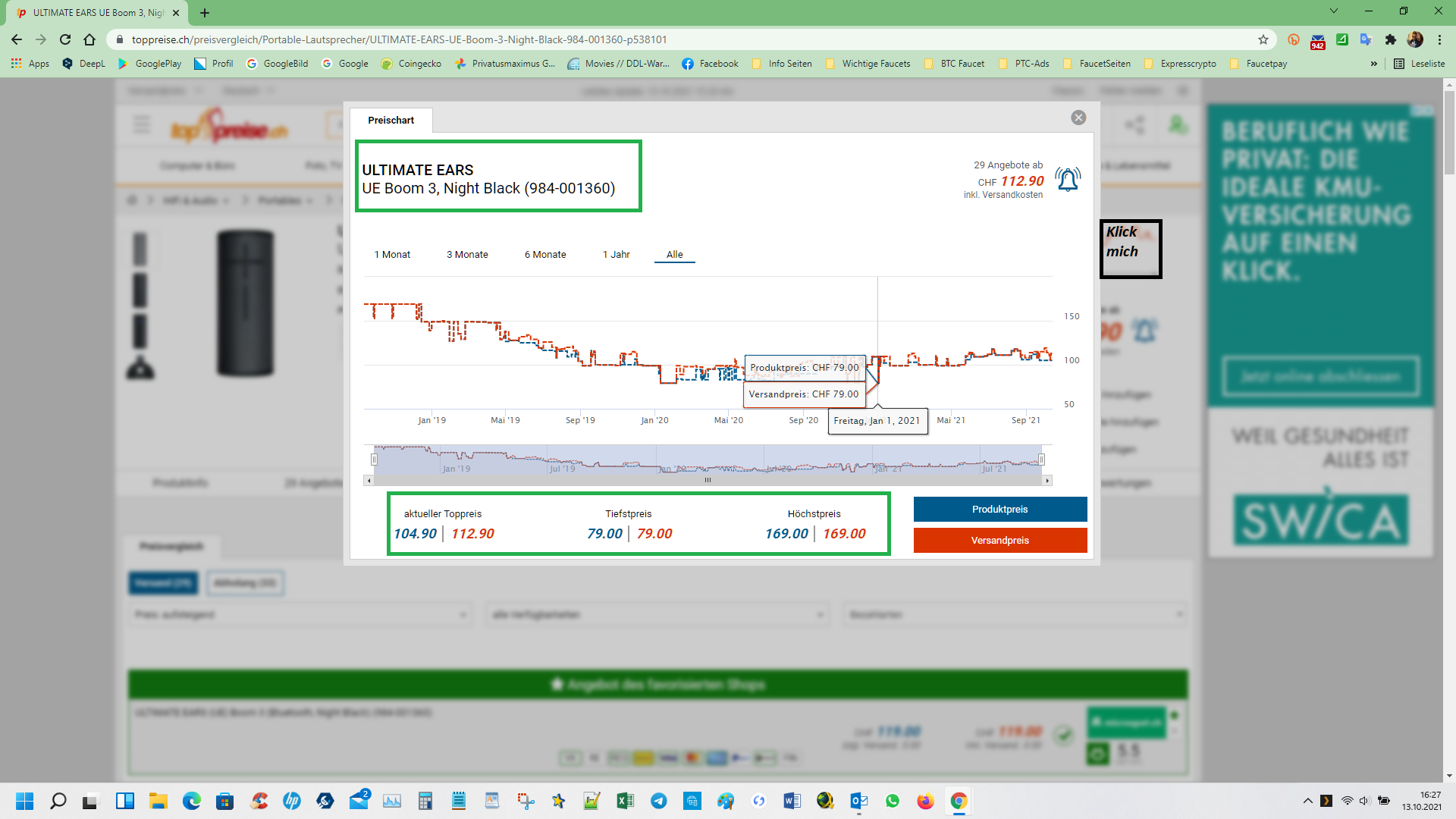 Lösung: Toppreise hat evt. nicht gerade den aktuellen ''Bestpreis'' drin aber die Produktpreis Analyse Alltime ist für das ganze Rabatt/Blackfriday Ding, Goldwert.(Bild)
