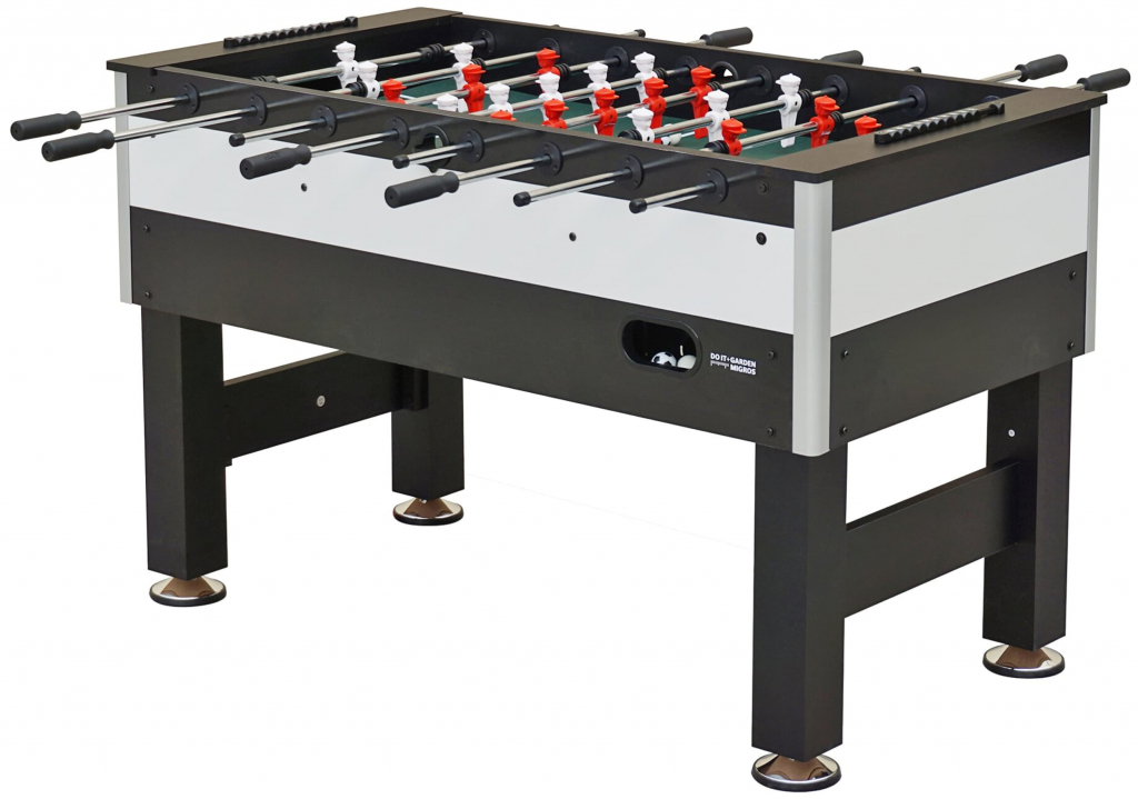 Der exklusive Tischfussball von Do it + Garden, der sowohl in seinem modernen Design als auch mit seinen Eigenschaften herausragend ist, wird zu einem Blickfang in jedem Garten und Wohnzimmer. Der Fussballtisch ist mit den Spielern, Handgriffen und Lagern der professionellen Carromco-Serie ausgestattet. Diese ermöglichen ein kontrolliertes und fortgeschrittenes Spiel für alle. Mit den 2 mitgelieferten High-Grip-Bällen ist das Passieren und Empfangen des Balls einfach und alle Schiesstechniken können gut gespielt werden. Die schwingende Metallplatte in der Torbox sorgt für einen lohnenden Klang, wenn ein Tor erzielt wird. Für Spiele, die einfach schnell und voller Action sein sollen, sind auch 2 schwarz-weiße Hartplastikkugeln enthalten.